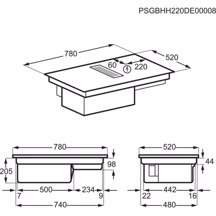 AEG CCE84543FB ExtractorHob Αυτόνομη Επαγωγική Εστία με Απορροφητήρα, Hob2Hood & Λειτουργία Bridge, Π78xΠ52εκ, Α+, Μαύρη