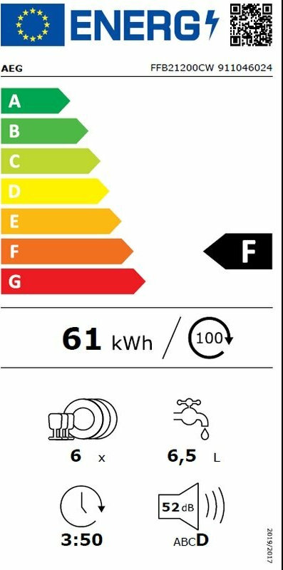 AEG FFB21200CW Πλυντήριο Πιάτων Πάγκου για 6 Σερβίτσια, Y43,8xΠ55εκ, F, Λευκό