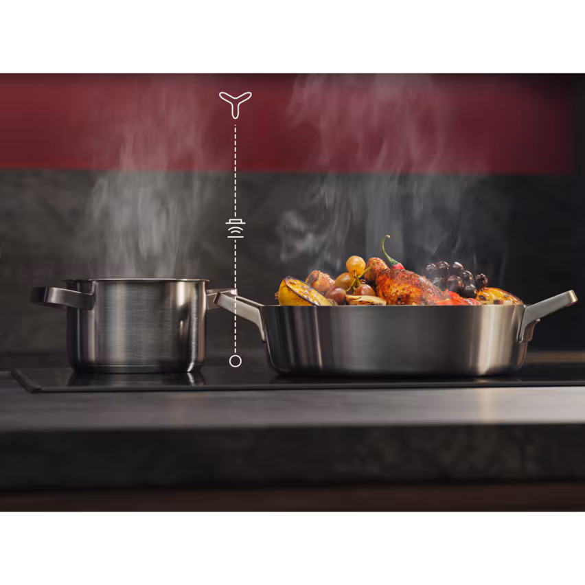 Η λειτουργία Hob2Hood® συνδέει την εστία και τον απορροφητήρα. Ο απορροφητήρας προσαρμόζει αυτόματα την ταχύτητα του ανεμιστήρα με βάση τη θερμότητα, χωρίς να κουνήσετε το δακτυλάκι σας. Για ισχυρή εξαγωγή κατά το ψήσιμο. Και πιο αθόρυβη εξαγωγή στο σιγοβράσιμο.