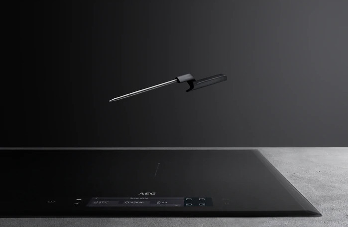 Τελειοποιήστε κάθε πιάτο με τον ασύρματο αισθητήρα φαγητού. Ο ασύρματος αισθητήρας ανιχνεύει θερμοκρασίες με ακρίβεια ενός βαθμού και προσαρμόζει τις ρυθμίσεις στις εστίες. Η μέτρηση και η διατήρηση της θερμοκρασίας είναι τόσο ακριβείς, που μπορείτε ακόμη και να κάνετε sous-vide.