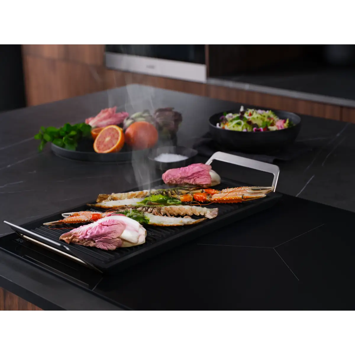 Η επαγωγική εστία 6000 Bridge χειρίζεται εύκολα το μαγείρεμα με μεγαλύτερες κατσαρόλες. Το κουμπί Bridge συνδέει δύο ζώνες μαγειρέματος σε μία για να ταιριάζει σε οποιοδήποτε μεγάλο ή μακρύ τηγάνι. Η συνδυασμένη ζώνη έχει την ίδια ρύθμιση θερμοκρασίας και χρόνου.