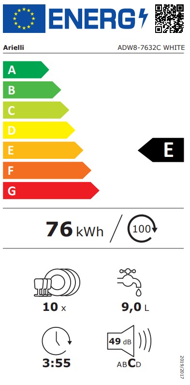 Arielli ADW8-7632C White Eλεύθερο Πλυντήριο Πιάτων για 10 Σερβίτσια, Y85xΠ45εκ, Ε, Λευκό