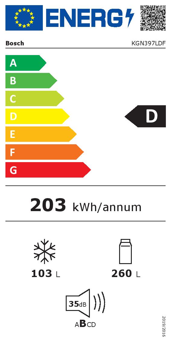 Bosch KGN397LDF Ψυγειοκαταψύκτης 363lt, Total NoFrost, D (Υ203,6xΠ60xΒ66,5) Inox