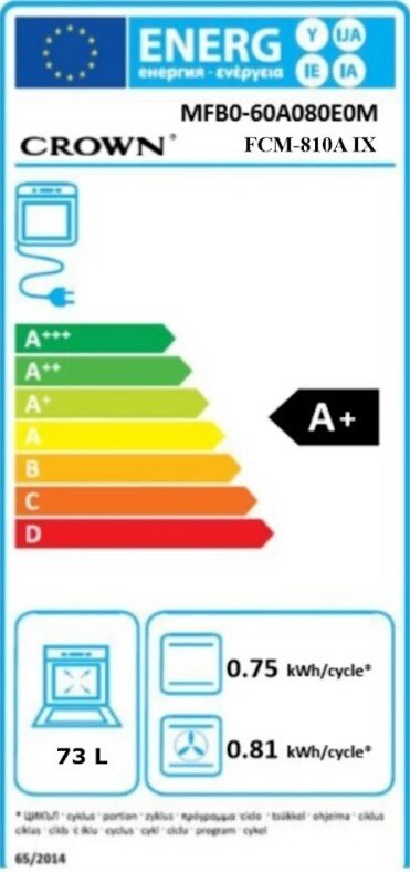 Crown FCM 810A IX Φούρνος άνω Πάγκου 73lt, χωρίς Εστίες, Π59,5εκ, Α+, Inox