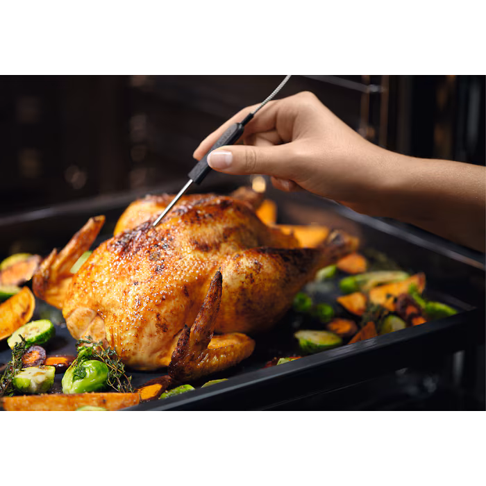 Ο αισθητήρας κρέατος παρακολουθεί τη θερμοκρασία του πυρήνα του φαγητού, χωρίς τον κίνδυνο υποψησίματος ή υπερψησίματος. Η χρήση του αυξάνει τον έλεγχο της διαδικασίας ψησίματος. Όταν το φαγητό είναι έτοιμο, ο αισθητήρας κρέατος σηματοδοτεί το τέλος του ψησίματος και απενεργοποιεί τον φούρνο.