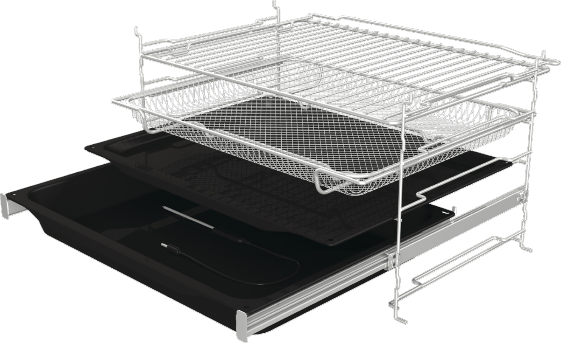 Απολαύστε τραγανά, νόστιμα τηγανητά φαγητά χωρίς τις επιπλέον θερμίδες! Αυτή η εντατική μέθοδος ψησίματος με ζεστό αέρα δημιουργεί μια τέλεια τραγανή χρυσαφένια κρούστα χωρίς πρόσθετο λίπος. Χρησιμοποιώντας ένα ειδικό ταψί με πλέγμα, μπορείτε να επιτύχετε ακόμα καλύτερα αποτελέσματα. Ιδανικό για μικρά κομμάτια κρέατος, ψαριού, λαχανικών και κατεψυγμένων προϊόντων, όπως τηγανητές πατάτες και κοτομπουκιές.