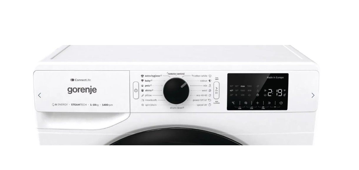 Gorenje WPNEI14A2SWIFI Πλυντήριο Ρούχων 10kg, 1400 στροφές, με Ατμό & Wifi, A, Λευκό