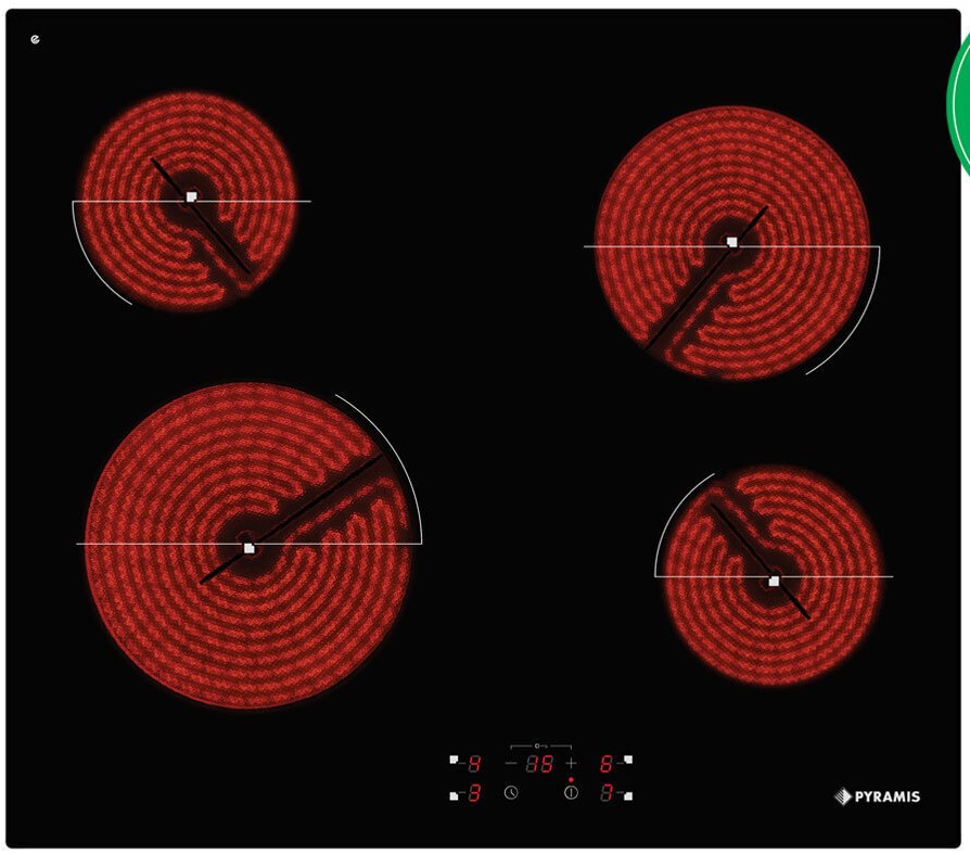 Η Pyramis PHC62410FMB διαθέτει μαύρη κεραμική επιφάνεια χωρίς πλαίσιο, προσφέροντας μια μοντέρνα και κομψή αισθητική που ενσωματώνεται αρμονικά σε κάθε κουζίνα. Η λεία επιφάνειά της καθαρίζεται εύκολα, διατηρώντας την κουζίνα σου πάντα λαμπερή.