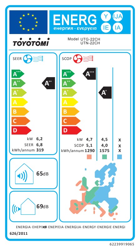 Βαθμός Απόδοσης Θέρμανσης (SCOP): 5,1 W/W