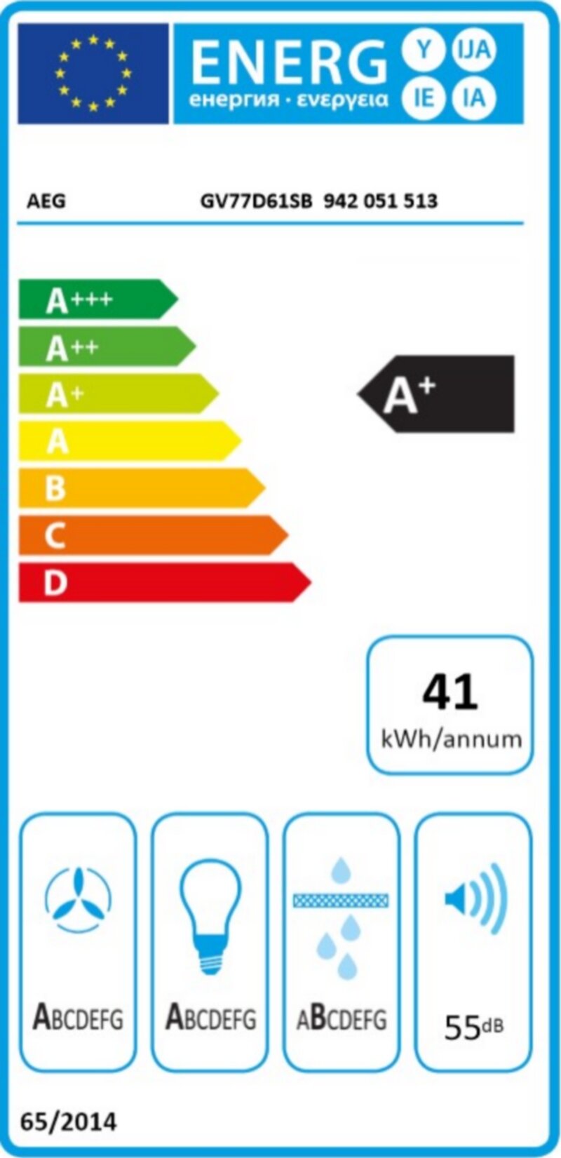 AEG GV77D61SB SilenceTech Aπορροφητήρας Καμινάδα 60cm, A+, Μαύρο