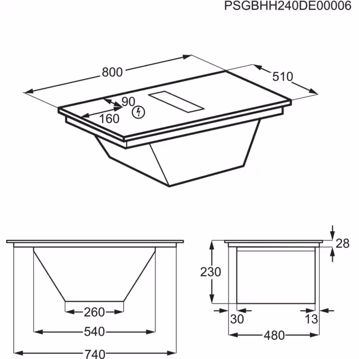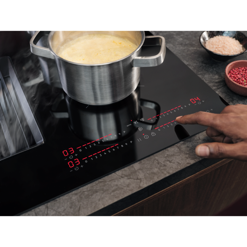AEG TH84CB03CB ExtractorHob Αυτόνομη Επαγωγική Εστία με Απορροφητήρα, Λειτουργία Κλειδώματος & Bridge, Π80xΒ51εκ, Α+, Μαύρη