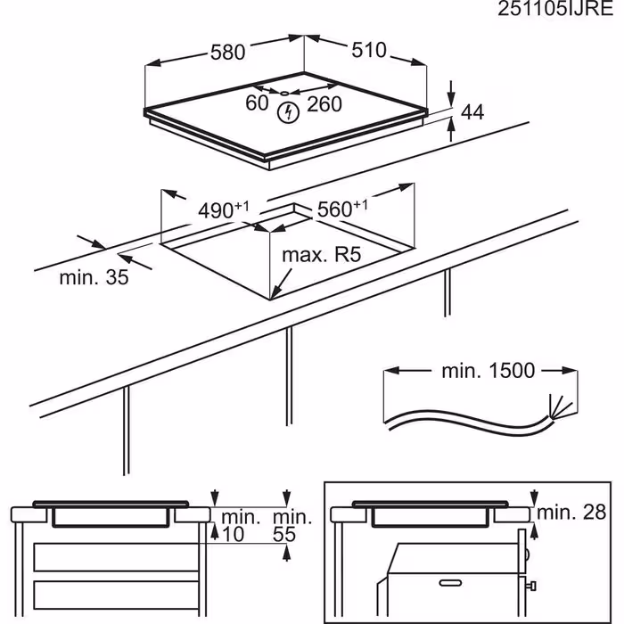 AEG TI64IB10IZ SenseBoil Αυτόνομη Επαγωγική Εστία με Λειτουργία Κλειδώματος & Λειτουργία Bridge, Π58xΒ51εκ, Μαύρη Ματ