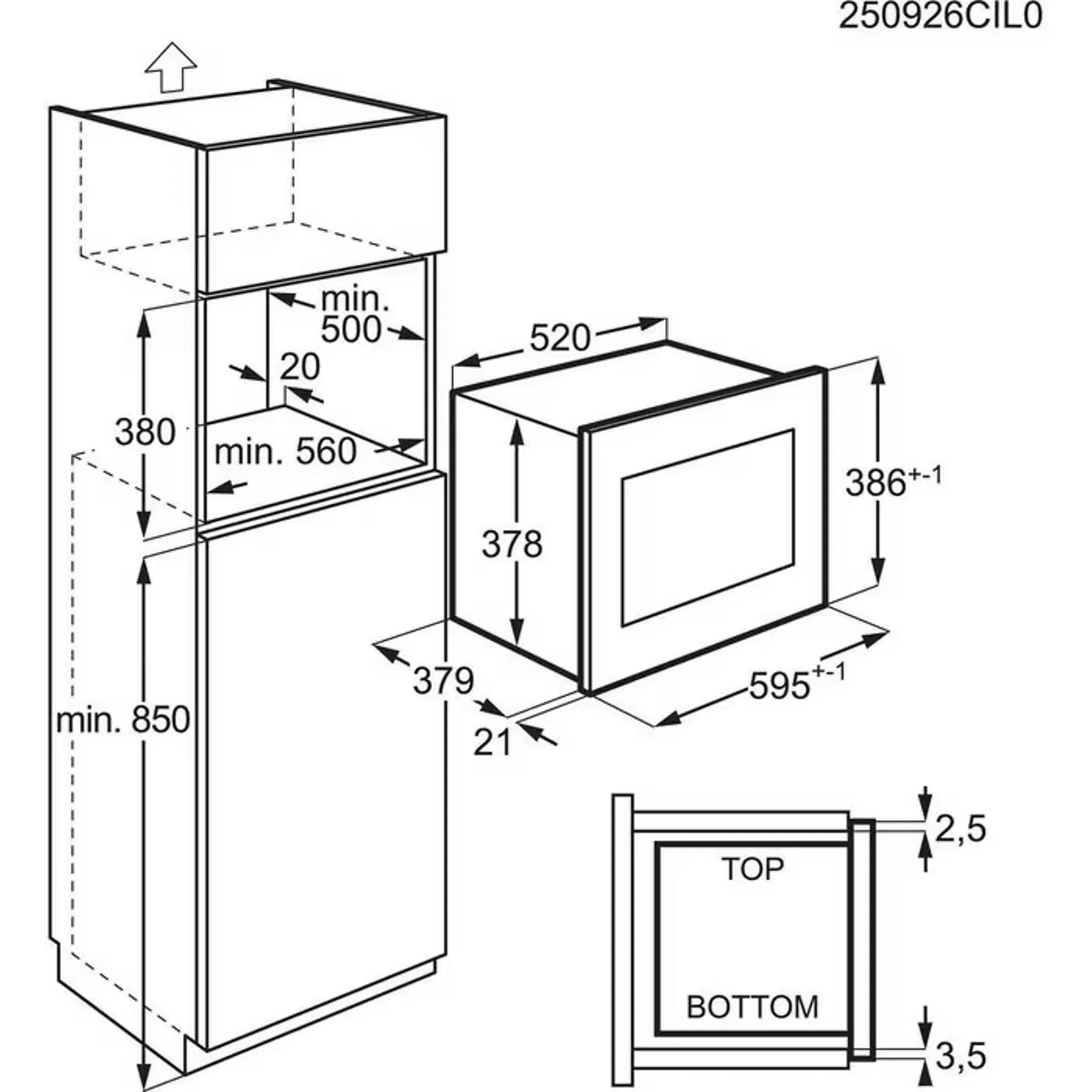 Διαστάσεις Εντοιχισμού (ΥxΠxΒ): 38 x 56 x 55 cm