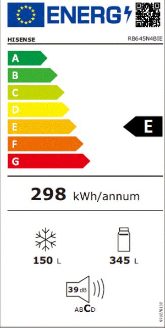 Ετήσια Κατανάλωση Ενέργειας: 298 kWh/y