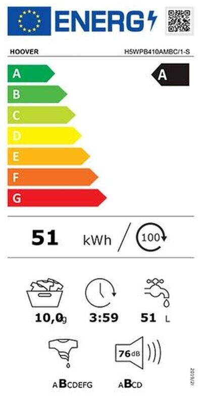 Hoover H5WPB410AMBC/1-S Πλυντήριο Ρούχων 10kg, 1400 Στροφών, με Ατμό & Wifi, Α, Λευκό