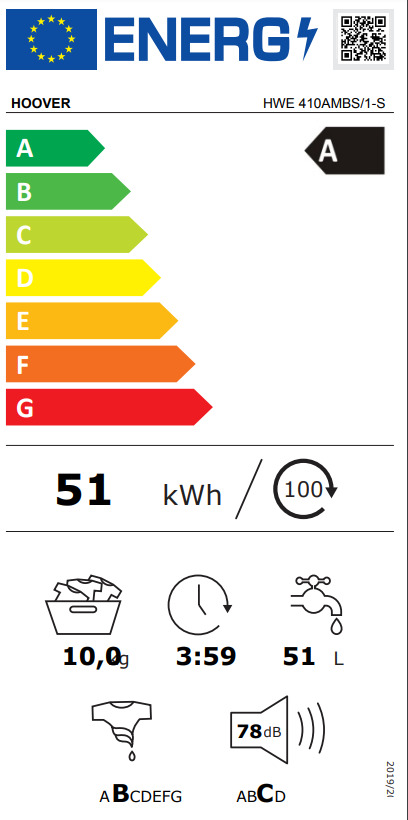 Η σειρά H-WASH 500 διαθέτει πιστοποίηση Νέας Ενεργειακής Κλάσης A, που είναι η καλύτερη στην κατηγορία. Σύμφωνα με τη Νέα Ενεργειακή Ετικέτα, το πλυντήριο κατηγορίας Α μειώνει την κατανάλωση κατά 51% σε σύγκριση με αυτό της κατηγορίας G, εξοικονομώντας ενέργεια και προστατεύοντας το περιβάλλον.