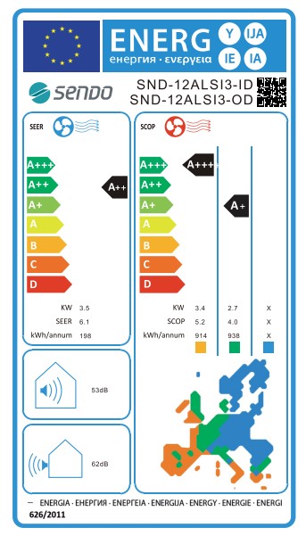 Το κλιματιστικό Aeolos SND-12ALSI2-ID/SND-12ALSI2-OD της εταιρείας Sendo, έχει ισχύ 12000 BTU και είναι κατάλληλο για χώρους από 18m² έως 25m².