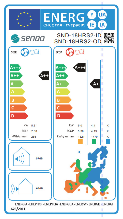 Βαθμός Απόδοσης Θέρμανσης (SCOP): 5,3 W/W