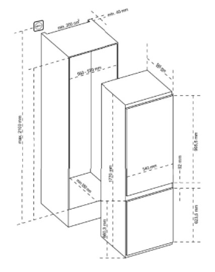 Sharp SJ-BE235E2XS-EU Εντοιχιζόμενος Ψυγειοκαταψύκτης 233lt, NoFrost, E (Υ177xΠ54xΒ54,5εκ)