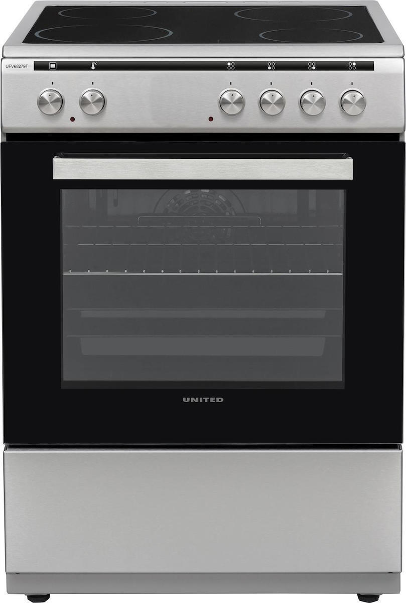 United UFV-68279T Ελεύθερη Κουζίνα 69lt, με Κεραμικές Εστίες, Π60εκ, Α, Inox