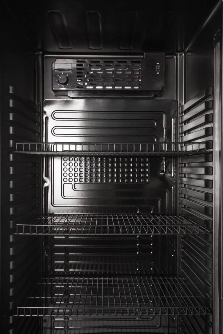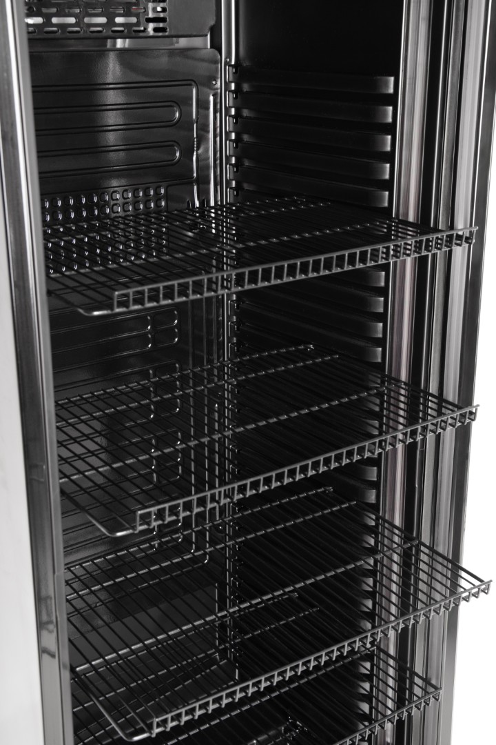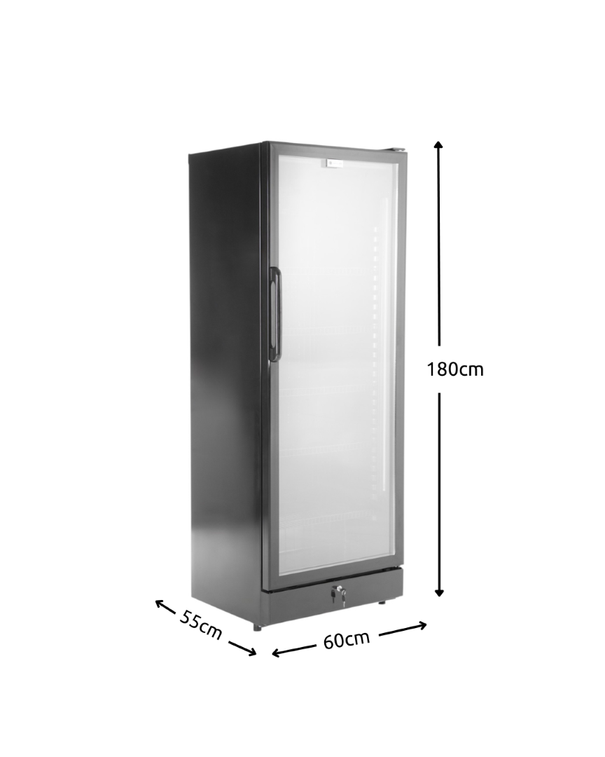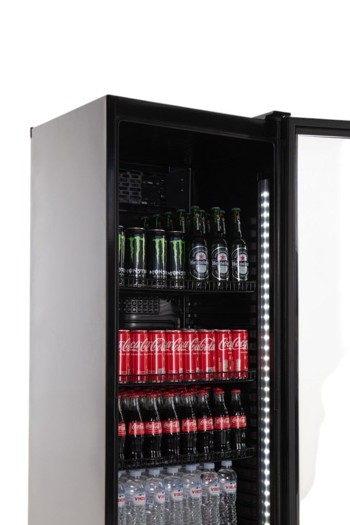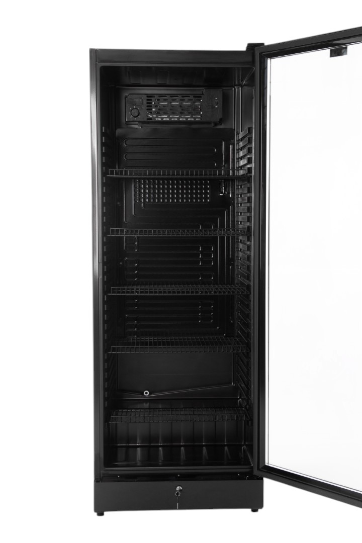 Διαθέτει 5 ρυθμιζόμενα ράφια, θερμοστάτη ακριβείας, κλειδαριά για ασφάλεια, καθώς και διαφανή πόρτα που ενισχύει την προβολή των προϊόντων, διευκολύνοντας τον πελάτη στην επιλογή.