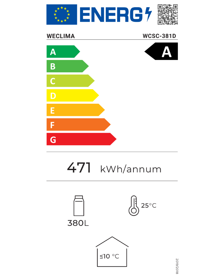 WECLIMA WCSC-381D Επαγγελματικό Ψυγείο Βιτρίνα 380lt, A (Υ180xΠ60xΒ55εκ) Μαύρο