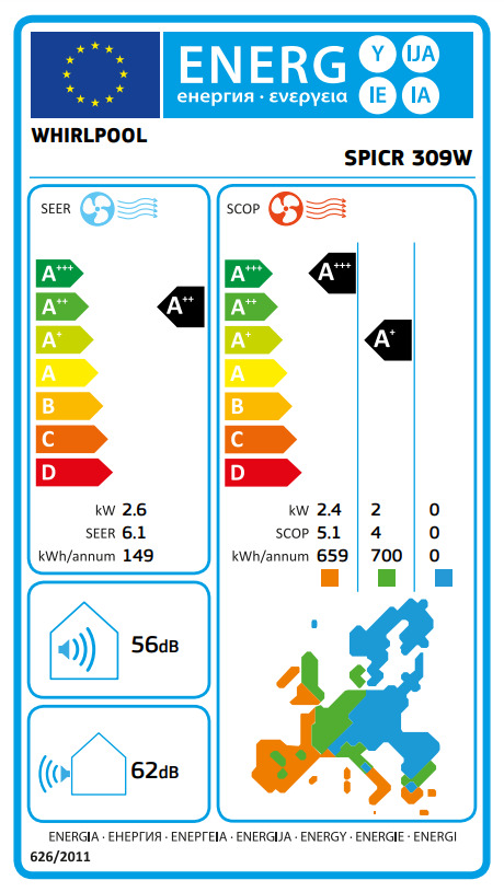 Βαθμός Απόδοσης Θέρμανσης (SCOP): 5,1 W/W