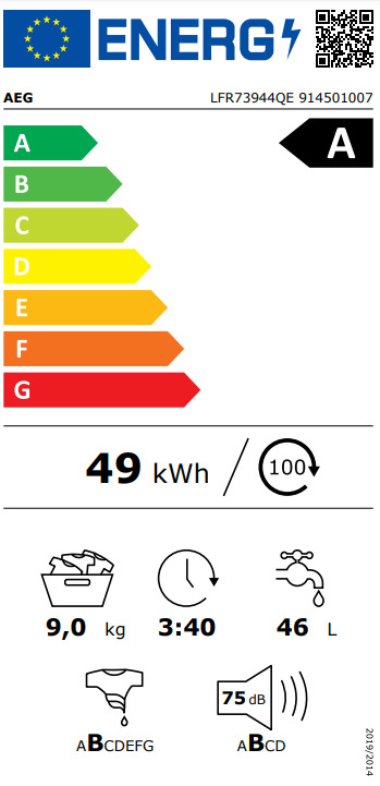 AEG LFR73944QE Πλυντήριο Ρούχων 9kg, 1400 Στροφών, με Ατμό & Wifi, A, Λευκό
