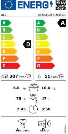 AEG LWR85165O Πλυντήριο-Στεγνωτήριο Ρούχων 10/6kg, 1600 Στροφές, με Ατμό & Wifi, A/D, Λευκό