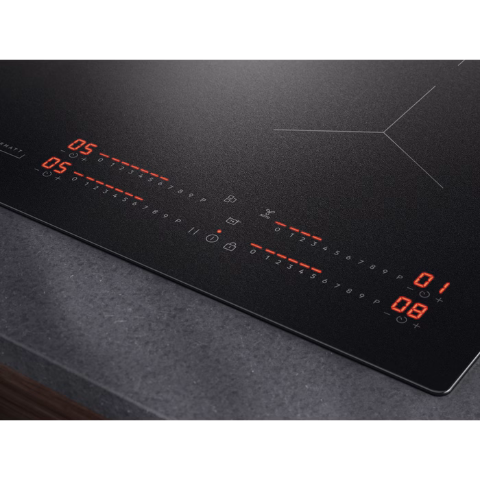 Η επαγωγική εστία SaphirMatt® με ματ μαύρο φινίρισμα αναδεικνύει τη μινιμαλιστική αισθητική της. Κατασκευασμένη με την πιο ανθεκτική στις γρατζουνιές και στα δακτυλικά αποτυπώματα επιφάνεια, για διαχρονική εμφάνιση.