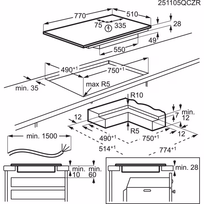 Διαστάσεις & ισχύς ζωνών μαγειρέματος: