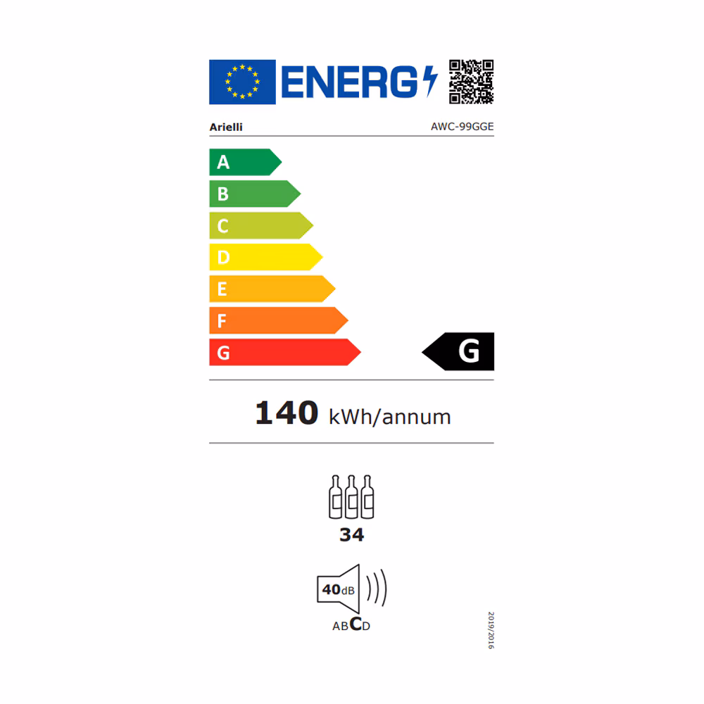 Arielli AWC-99GGE Συντηρητής Κρασιών 34 Φιαλών, 93lt, G (Υ84,5xΠ44xΒ47cm) Μαύρος