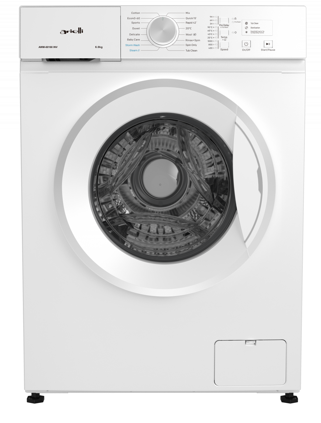 Arielli AWM-60168 INV Πλυντήριο Ρούχων 6kg, 1000 Στροφών, με Ατμό, A, Λευκό