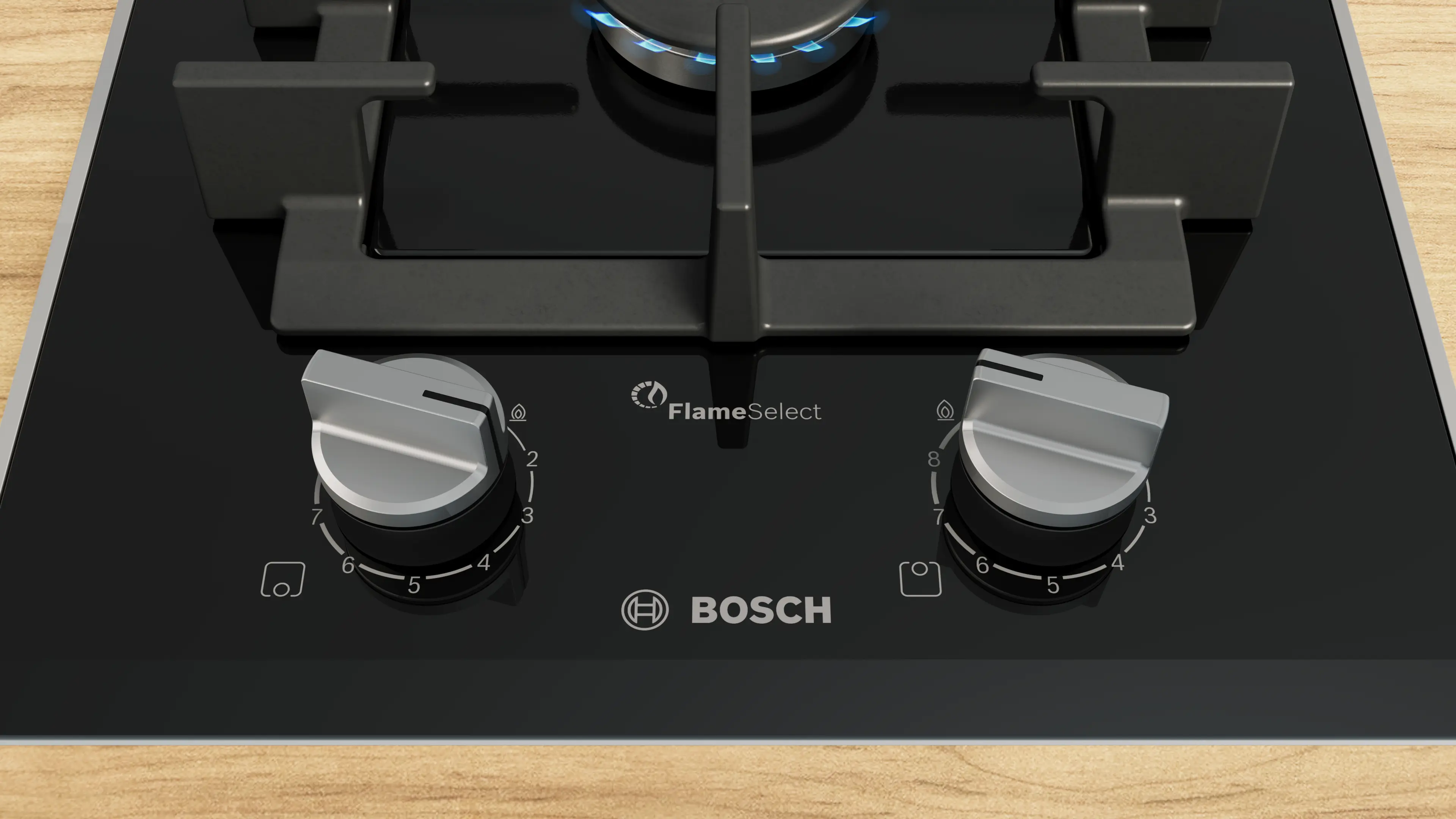 Bosch PRB3A6I40 Domino Εστία Αερίου Αυτόνομη με Ιnox Πλαίσιο, Π30,6xΒ52,7εκ, Μαύρη
