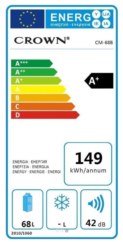 Crown CM-68B Ψυγείο Mini Bar Βιτρίνα 68lt, E (Y59xΠ44,6xΒ44,2εκ) Μαύρο