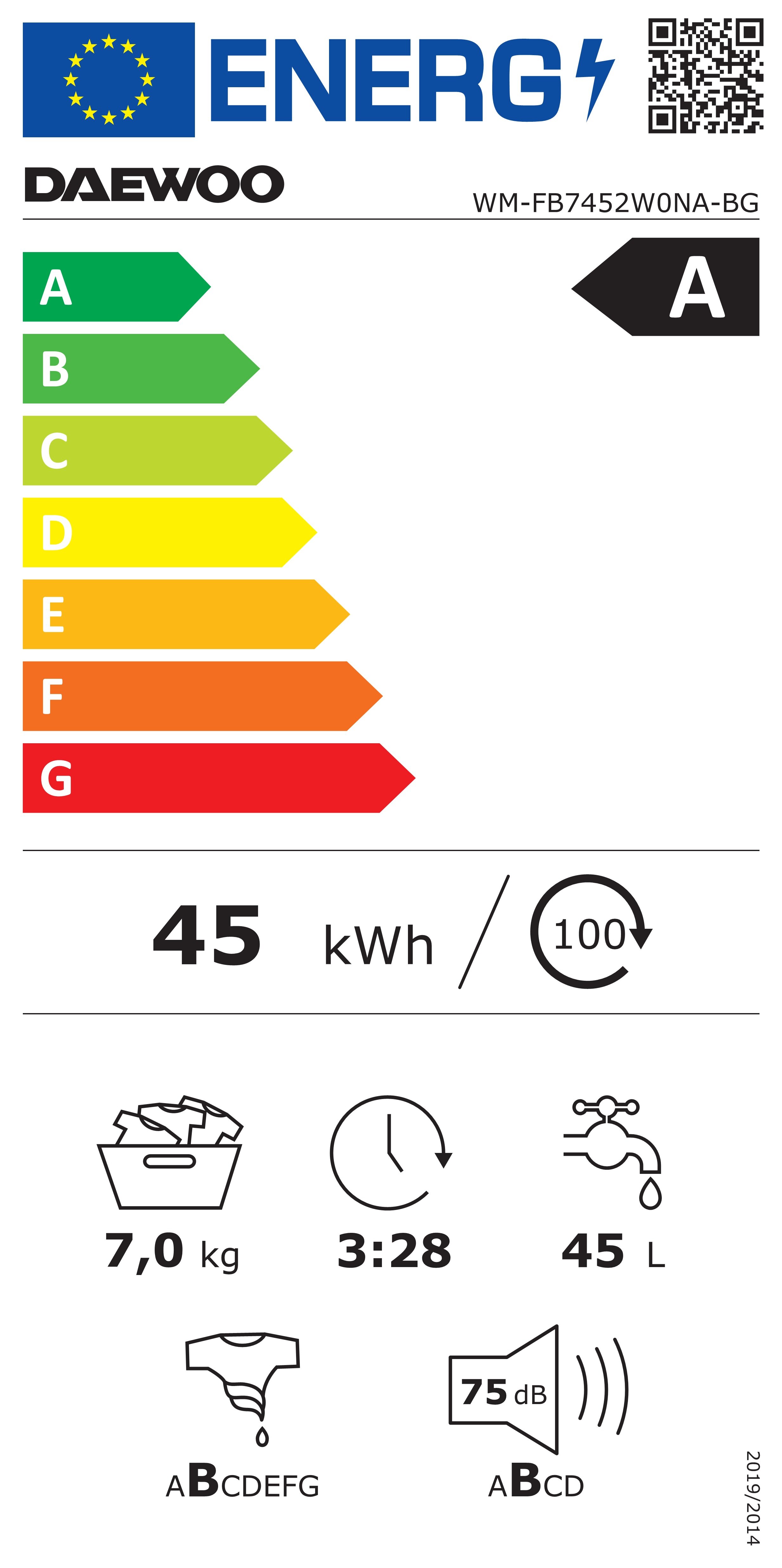 ✔ Το Daewoo WM-FB7452W0NA-BG συνδυάζει ισχυρό κινητήρα, 1200 στροφές, 15 προγράμματα πλύσης και σύντομο πρόγραμμα 15 λεπτών
