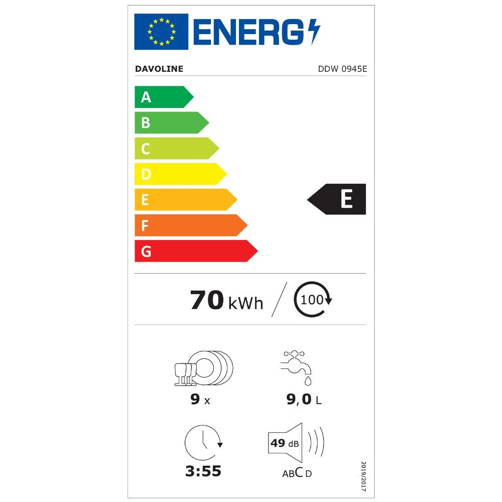 Davoline DDW 0945E Πλήρως Εντοιχιζόμενο Πλυντήριο Πιάτων για 9 Σερβίτσια, Π45εκ, Ε (3 Έτη Εγγύηση)