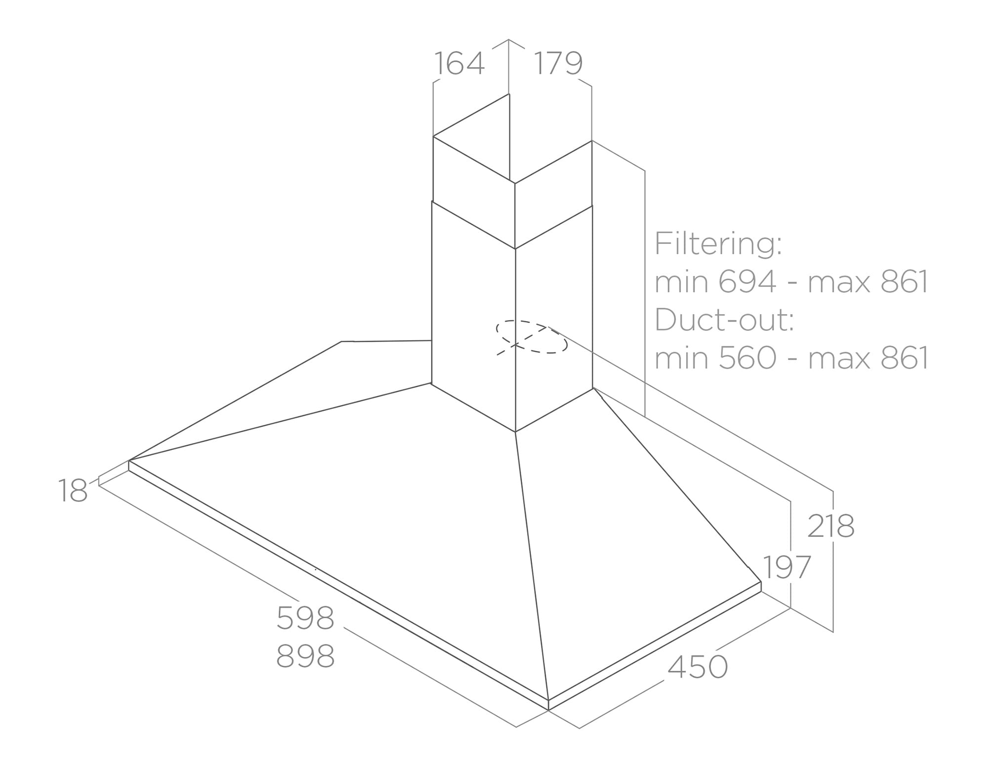 ✓ Δυνατότητα προσαρμογής της καμινάδας ανάλογα τον χώρο και τα ντουλάπια