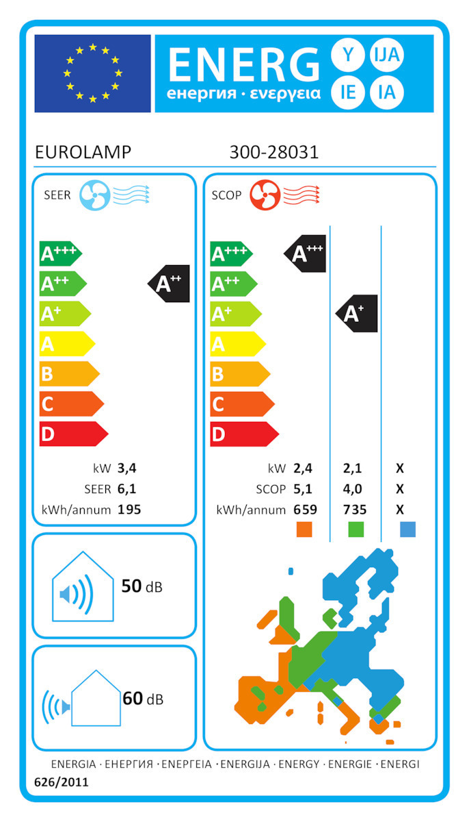 Βαθμός Απόδοσης Θέρμανσης (SCOP): 5,1 W/W