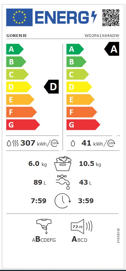 Gorenje WD2PA1X64ADW Πλυντήριο-Στεγνωτήριο Ρούχων 10,5kg/6kg, 1400 Στροφών, με Ατμό & Wifi, Α/D, Λευκό