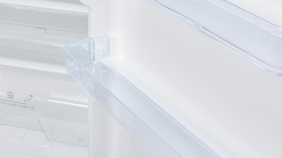 Το ψυγείο σας διαθέτει γυάλινα ράφια με πλαστικό τελείωμα που εμποδίζει σημαντικά τη διαρροή υγρών στο εσωτερικό της συσκευής. Επιπλέον, τα γυάλινα ράφια σας προσφέρουν ευκολία στο καθάρισμα για να διατηρείτε το ψυγείο σας καθαρό με απόλυτη ευκολία.