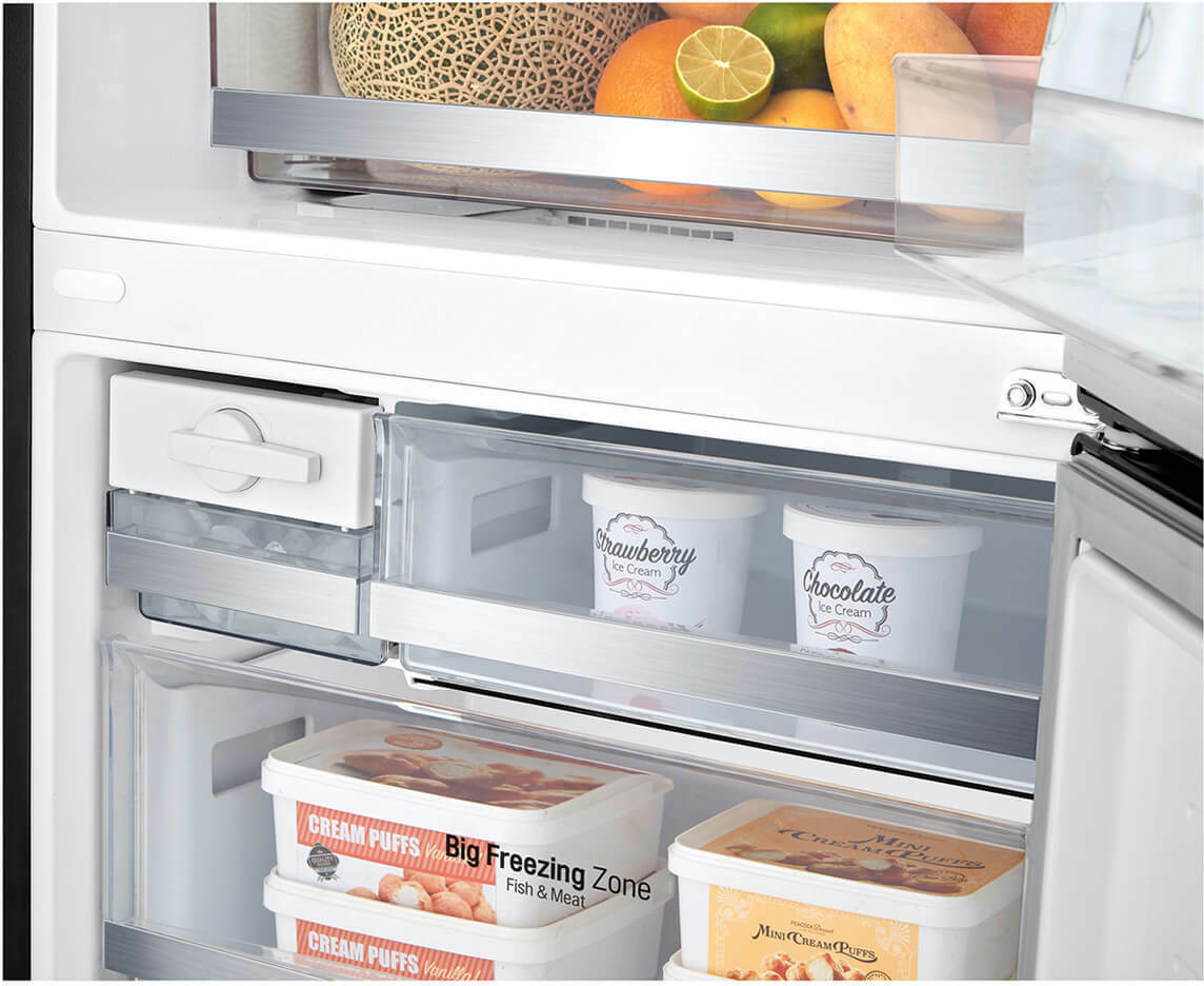 Αυτό το έξυπνο ψυγείο διαθέτει πτυσσόμενο ράφι που προσαρμόζεται σε 2 κινήσεις, ιδανικό για τις ψηλές φιάλες και τα μεγάλα δοχεία που δυσκολεύονται να βρουν χώρο. Ακόμα και το διαμέρισμα συντήρησης κάνει την καθημερινότητα πιο βολική, μειώνοντας την ανάγκη για κατάψυξη και απόψυξη.
