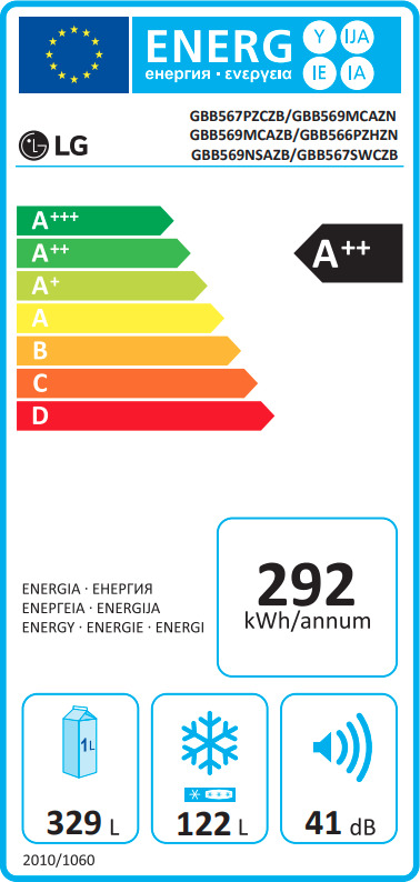 Ετήσια Κατανάλωση Ενέργειας: 282 kWh/y