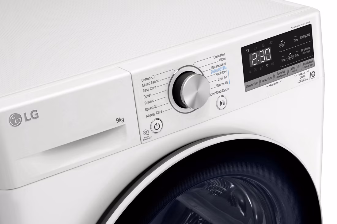 LG RH90V9AV4N Στεγνωτήριο Ρούχων 9kg, με Αντλία θερμότητας & Wifi, C, Λευκό