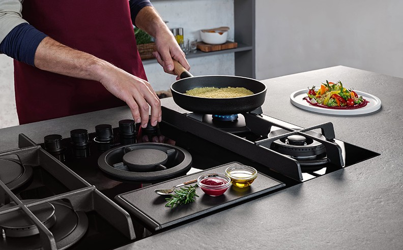 Πολλά μεγάλα σκεύη ταυτόχρονα στην εστία? Με το σύστημα multi flexi space, έχετε περισσότερο χώρο διαθέσιμο, τόσο σε μήκος όσο και σε πλάτος όταν χρησιμοποιείτε μεγάλα σκεύη. Μπορείτε να σύρετε τα σκεύη από τη μία εστία στην άλλη, χωρίς να τα σηκώνετε χάρη στα κλειστά εγκάρσια πλέγματα, που δημιουργούν μία επίπεδη συνεχή επιφάνεια. Μία πρακτική επιφάνεια μαγειρέματος από χυτοσίδηρο εξασφαλίζει ότι όλα όσα χρειάζεστε είναι πάντα κοντά σας.