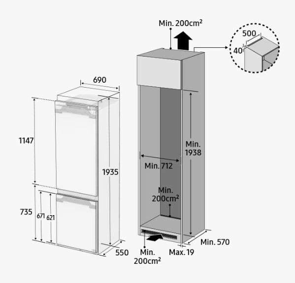 Samsung BRB38G705EWW/EF Eντοιχιζόμενος Ψυγειοκαταψύκτης 389lt, NoFrost, Wifi, E (Y193,5xΠ69xΒ55εκ) Λευκός
