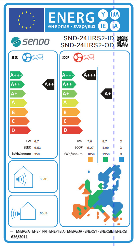 Sendo Hermes SND-24/HRS2 Oικιακό Κλιματιστικό Inverter 24000 BTU, με Ιονιστή & WiFi, A++/A+++, Λευκό (10 'Ετη Εγγύηση)