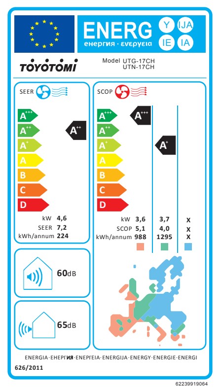 Βαθμός Απόδοσης Θέρμανσης (SCOP): 5,1 W/W