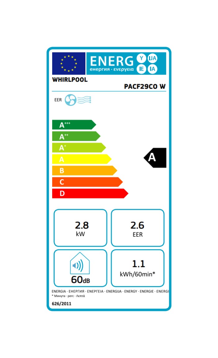Whirlpool PACF29CO WHITE Φορητό Κλιματιστικό 9000BTU, μόνο Ψύξης, A, Λευκό