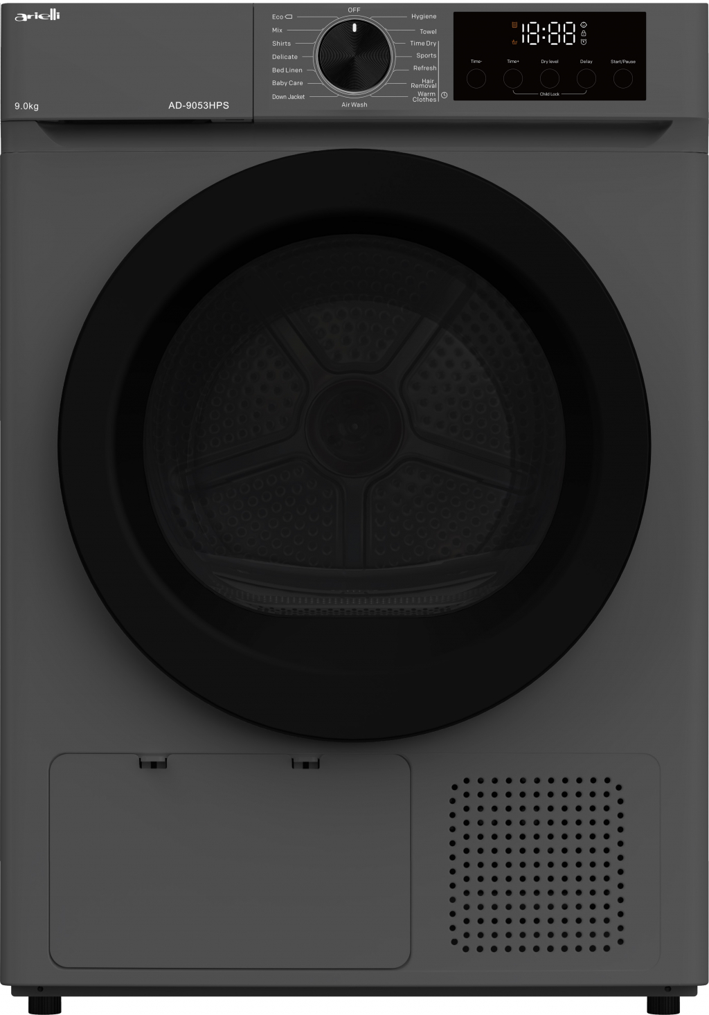 Arielli AD-9053HPS Στεγνωτήριο Ρούχων 9kg, με Αντλία θερμότητας, Α++, Γκρι